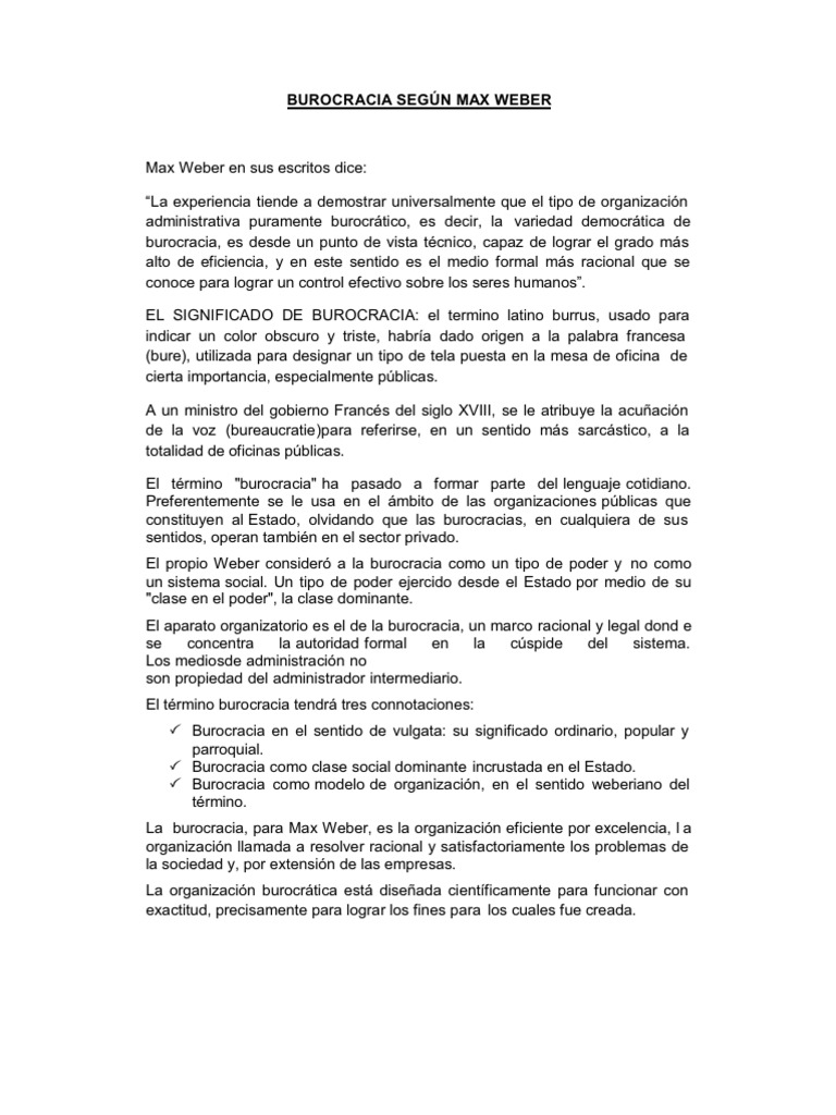 Concepto De Burocracia Segun Max Weber